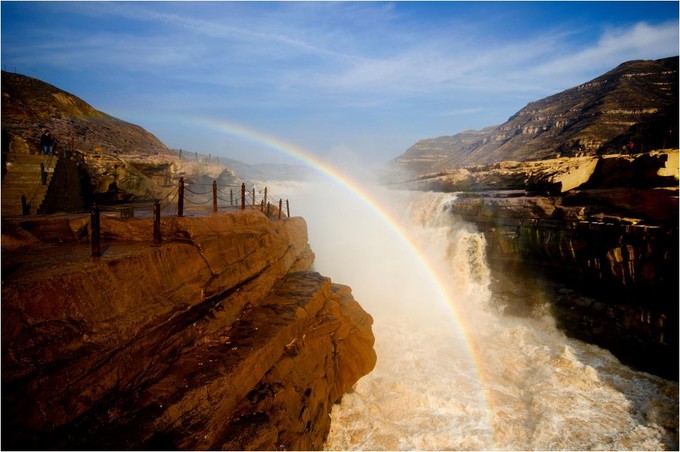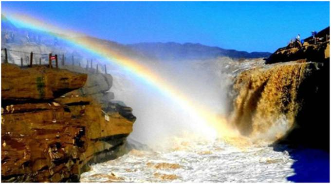 要知道壺口瀑布有兩道奇觀是水底冒煙,彩橋通天。