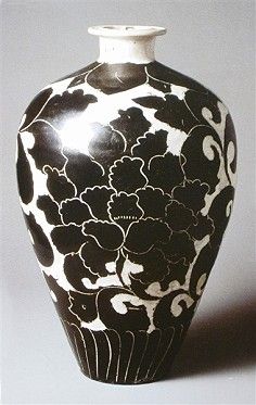 磁州窯以生產(chǎn)白釉黑彩瓷器著稱(chēng)于世,黑白對(duì)比,強(qiáng)烈鮮明,圖案十分醒目,刻、劃、剔、填彩兼用,并且創(chuàng)造性地將中國(guó)繪畫(huà)的技法,以圖案的構(gòu)成形式,巧妙而生動(dòng)地繪制在瓷器上,具有引人入勝的藝術(shù)魅力。它開(kāi)創(chuàng)了我國(guó)瓷器繪畫(huà)裝飾的新途徑,同時(shí)也為宋以后景德鎮(zhèn)青花及彩繪瓷器的大發(fā)展奠定了基礎(chǔ)。