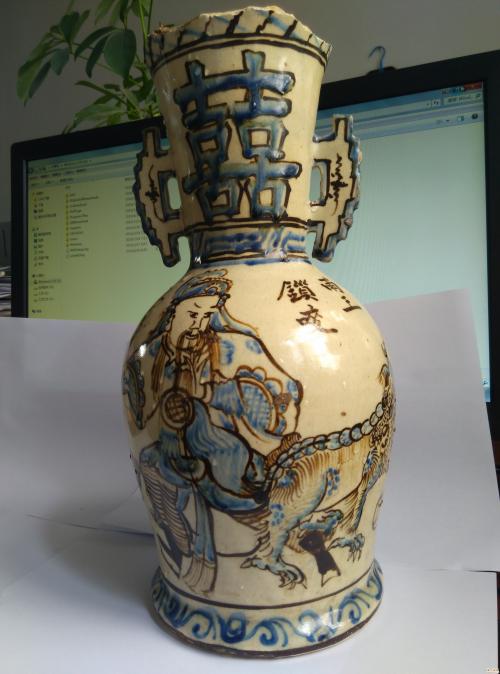 磁州窯是中國(guó)老窯口中民窯的代表,其產(chǎn)品具有濃郁的鄉(xiāng)土氣息和市井風(fēng)情。其繪畫(huà)或書(shū)法風(fēng)格往往粗獷豪放,灑脫不羈。但灑脫不等于隨意、孱弱。一件瓷器從練泥、做胎到施釉、繪畫(huà)及至最后燒成,是相當(dāng)復(fù)雜的一個(gè)過(guò)程。即便是民窯產(chǎn)品,為了使做出來(lái)的東西像樣、有市場(chǎng),在繪畫(huà)的時(shí)候,工匠還是相當(dāng)用心的,而且他畫(huà)或者寫(xiě)的都是日復(fù)一日練得純熟的內(nèi)容,都有著一定的功力。而新仿的磁州窯瓷器往往為了追求民窯特點(diǎn),過(guò)于隨意,常常故意畫(huà)的散亂,人為夸張,而書(shū)法也常常孱弱無(wú)力,章法松散,露了破綻。