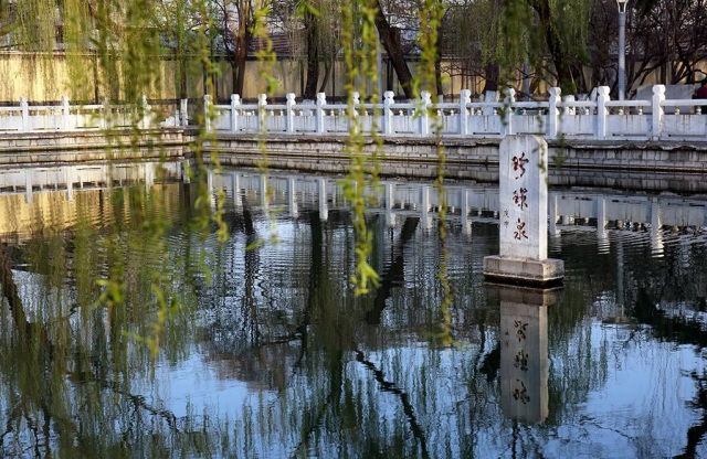 珍珠泉,坐落在院前街山東省人大常委會大院內(nèi)西側(cè),略成長方形,面積1240余平方米,深廣清澈。因舊城東南隅護城河中有南珍珠泉,所以該泉又稱北珍珠泉。金《名泉碑》、明《七十二泉詩》、清《七十二泉記》均著錄。泉池溢水標高26.28米。珍珠泉泉水由玉帶河北流進濯纓湖,經(jīng)百花洲注入大明湖。珍珠泉自古以來頗負盛名,歷代多有文人題詠。