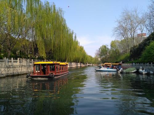 濟(jì)南老城的泉水分布最為密集,十大泉群中,僅有老城就占有4個(gè),基本上是現(xiàn)今游船環(huán)城一圈的區(qū)域:從黑虎泉出發(fā),經(jīng)泉城廣場(chǎng)—西門—五龍?zhí)丁竺骱珗@北側(cè)—老東門—青龍橋,密布著大大小小100多處天然甘泉,匯流成的護(hù)城河流淌到大明湖,與周圍的千佛山、鵲山、華山等構(gòu)成了獨(dú)特的風(fēng)光,也成為少有的集“山、泉、湖、河、城”于一體的城市,自古就有“家家泉水,戶戶垂柳”、“四面荷花三面柳,一城山色半城湖”的美譽(yù)。