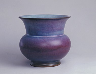 由于釉色的相互交融而產(chǎn)生的無數(shù)顏色不一、形狀各異的窯變,是構(gòu)成鈞瓷區(qū)別于其它青瓷的另一個(gè)特色。鈞釉中的紫色引人注目。各種紫色是紅釉與藍(lán)釉互相融合的結(jié)果。鈞釉的紫斑在工藝上是將青藍(lán)色的釉上有意涂上一層銅紅釉所造成的。后人對(duì)鈞瓷的紫色的評(píng)價(jià)極高,近人劉子芬在《竹園陶說》中說“鈞窯器一枚,價(jià)值萬金┅┅宋時(shí)紫色如熟透之葡萄,濃麗無比,紫定、紫鈞,其器皆純色?!?