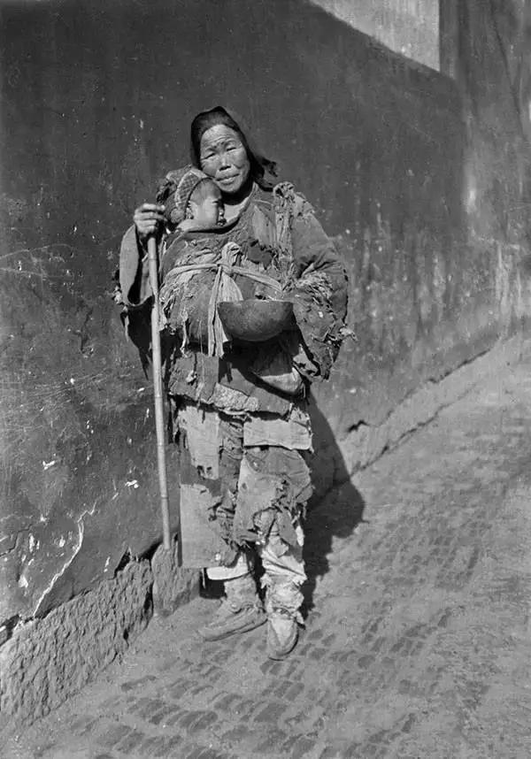 老年婦女乞丐,懷里還揣著一個(gè)孩子