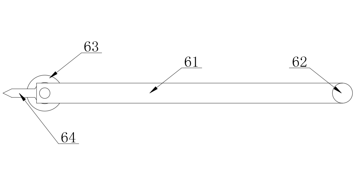所述指向件(6)包括連接桿(61),所述連接桿(61)一端設(shè)有定位柱(62),所述連接桿(61)另一端設(shè)有固定吸盤(pán)(63),所述固定吸盤(pán)(63)與連接桿(61)之間設(shè)有指示標(biāo)(64),所述定位柱(62)中部開(kāi)設(shè)有轉(zhuǎn)向槽(65),所述連接桿(61)與定位柱(62)連接處設(shè)有第一通孔(66),所述連接桿(61)另一端固定設(shè)有固定柱(67),所述固定柱(67)遠(yuǎn)離連接桿(61)一端與固定吸盤(pán)(63)固定連接,所述指示標(biāo)(64)與固定柱(67)連接處開(kāi)設(shè)有第二通孔(68)。