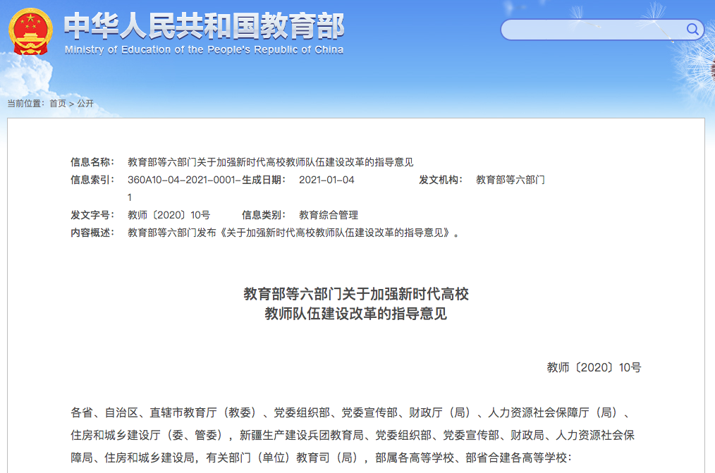 ——教育部教師工作司負責人就《關(guān)于加強新時代高校教師隊伍建設(shè)改革的指導(dǎo)意見》回答