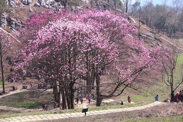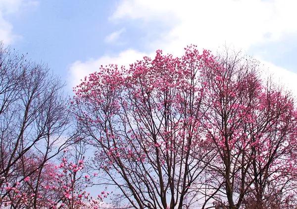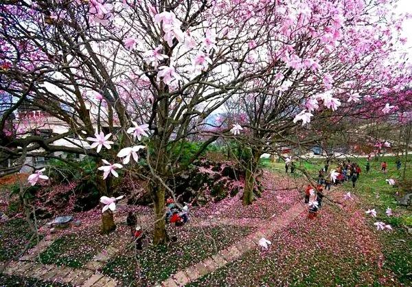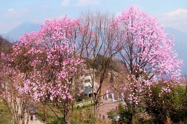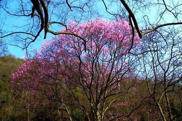 在漢中的油菜花競相開放的時(shí)候,北川藥王谷的野生辛夷花也是風(fēng)華正茂的時(shí)候。漫山遍野的粉色花朵爭奇斗艷,蔚為壯觀。