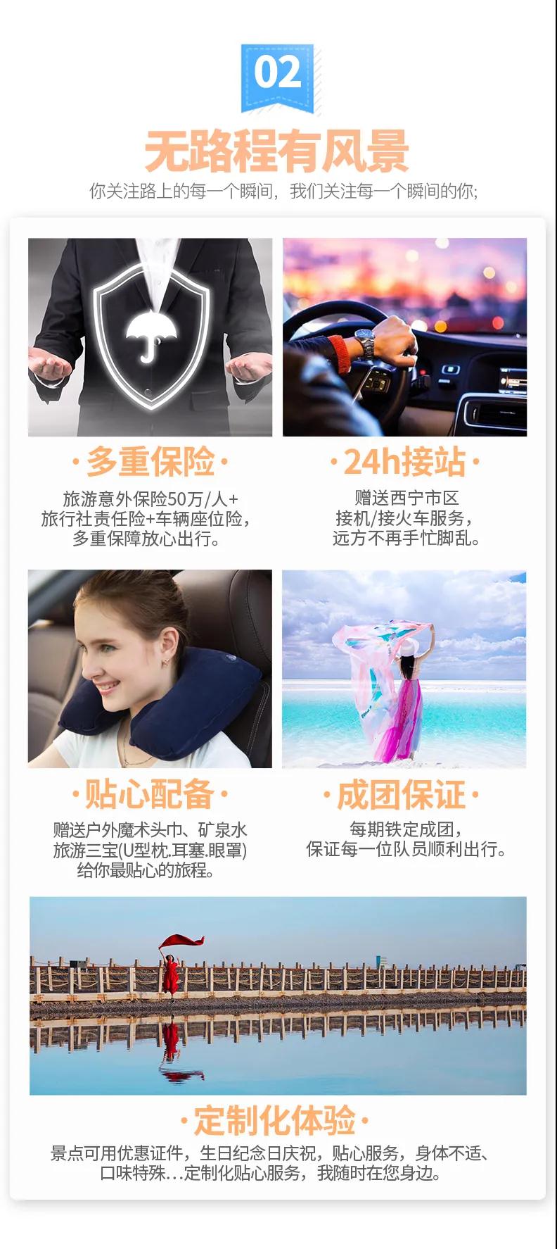 5、贈送:贈送西寧市區(qū)24小時接機(jī)/接火車服務(wù);贈送戶外魔術(shù)頭巾、旅游三寶(頸枕耳塞眼罩)、礦泉水。(贈送項(xiàng)目不用費(fèi)用不退)