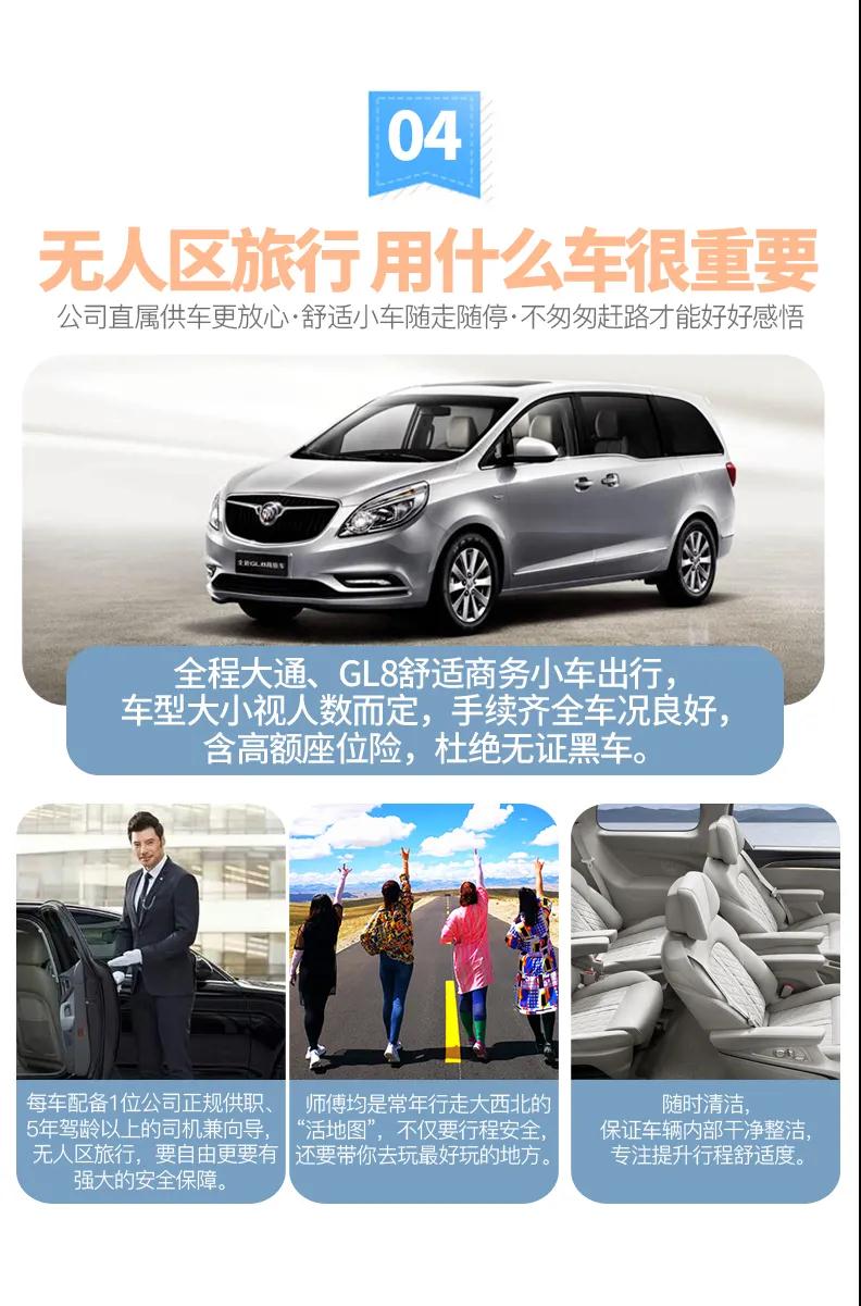 2、交通:VIP私享6人小團(tuán),全程商務(wù)車出行,保證一人一正座位,車型大小根據(jù)實(shí)際人數(shù)安排,且由駕駛經(jīng)驗(yàn)豐富的司機(jī)為您的出行保駕護(hù)航,報價包含車費(fèi)、油費(fèi)、停車費(fèi)、維修費(fèi)及司機(jī)勞務(wù)費(fèi)。
