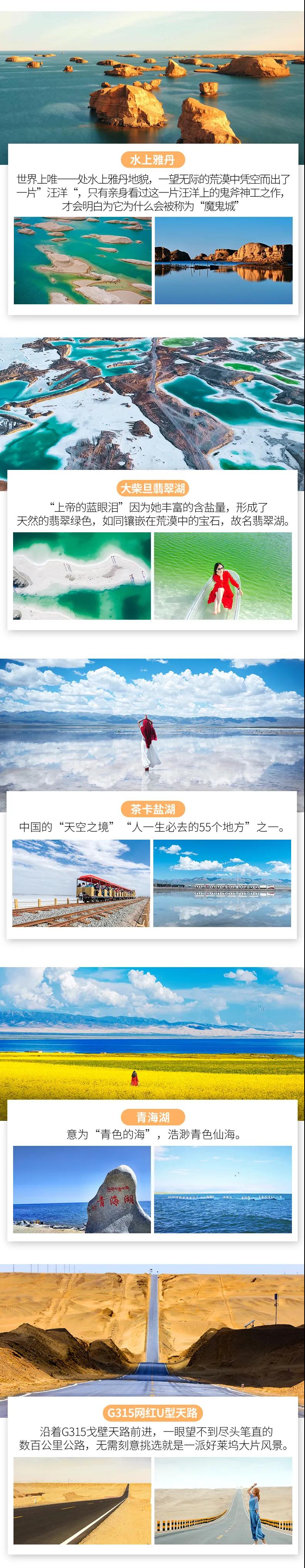 艾肯泉+水上雅丹+茶卡鹽湖+大柴旦翡翠湖+茫崖翡翠湖+東臺吉乃爾湖+西臺雙色湖+青海湖+G315U型公路