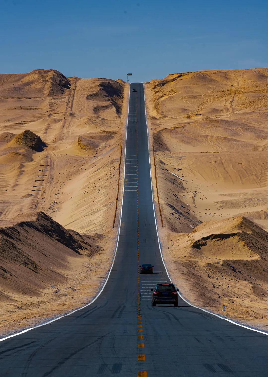 車子繼續(xù)向前行進(jìn),我們來到不遠(yuǎn)處的沿著G315戈壁天路駛向大柴旦,一眼望不到盡頭筆直的數(shù)百公里公路,無需刻意挑選就是一派好萊塢大片風(fēng)景,野性的路野性的起伏野性的自己,在這條路上你可以盡情感受公路旅行的自由。
