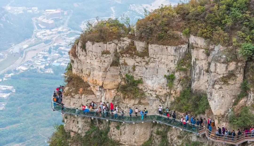 后前往云臺山,自行游覽盆景峽谷——【溫盤峪】(又名紅石峽)。那里集華夏山水與方寸之中;欣賞白龍瀑、黑龍洞、懸石、相吻石、含羞石、天女散化瀑等景觀,觀北方罕見景觀鐘乳石,盡情領(lǐng)略“真山、真水、真空氣”,游覽子房湖, 后游覽云臺山最高峰【茱萸峰】,茱萸峰是歷代文人墨客,僧道修行的圣地,這里植被茂密,古樹參天,有千年名樹紅豆杉,五角楓樹,太行花,森林覆蓋率高達93%,滿山覆蓋的都是原始次生林,有天然氧吧之美譽。踏千階的云梯棧道登上海拔1308米的茱萸峰頂,但見群山連綿,峰涌云動,使人頓生“會當凌絕頂,一覽眾山小”的豪邁氣概。俯視腳下,群峰形似海浪涌。山頂氣候多變,倏忽間風起云生,白霧從山間咕嘟嘟地涌出,紅日隨即隱去。山峰在云霧中出沒,云騰山浮,如臨仙界。玻璃棧道位于云臺山茱萸峰鳳凰嶺景點,在海拔1080米的半山腰上依崖而建。【玻璃棧道】分為兩段,其中一段沿崖壁呈U型,另一段懸于千米懸崖之上,總長400余米,寬約1.6米。(玻璃棧道體驗費,為20元/人需自理,如遇景區(qū)政策性關(guān)閉,則取消該景點,不另行通知,不退任何費用)游覽結(jié)束返回聊城。