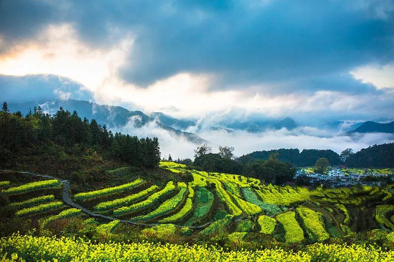 2、深山海拔梯田型油菜花:(比如江嶺)2月底油菜花會大部分逐步開放,2月26日后- 4月初左右將是花期佳期。(最佳賞花期:3月5日后-4月初左右,相比往年提前5-7天左右)