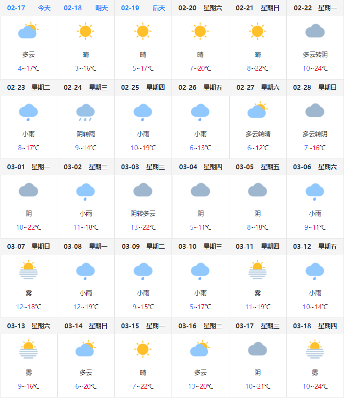 根據(jù)中央氣象預(yù)報顯示,2月17日-3月18日,婺源氣溫逐漸升高,晴天多云為主,溫度保持在9-18℃左右,此種溫度能適當(dāng)加速油菜花的生長。正適合踏春賞花!
