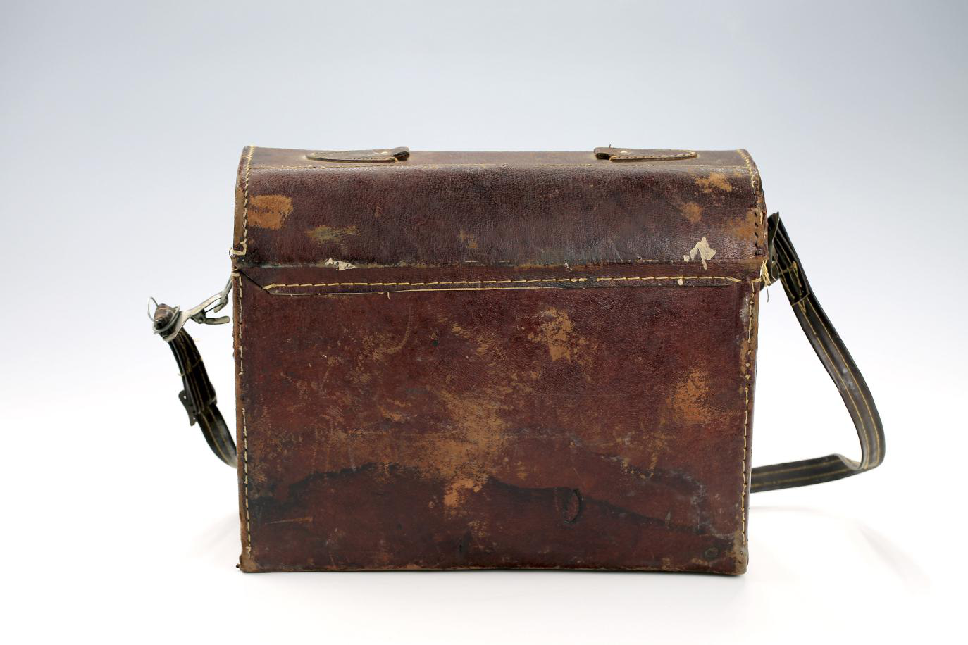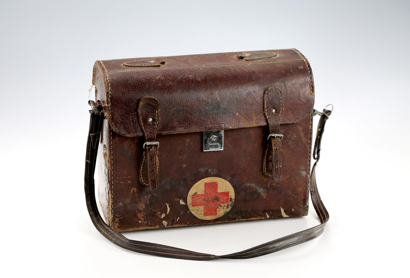 這只藥箱年代為二十世紀八十年代初,材質(zhì)為皮革。長33厘米,寬15厘米,高26厘米,是國家一級文物。