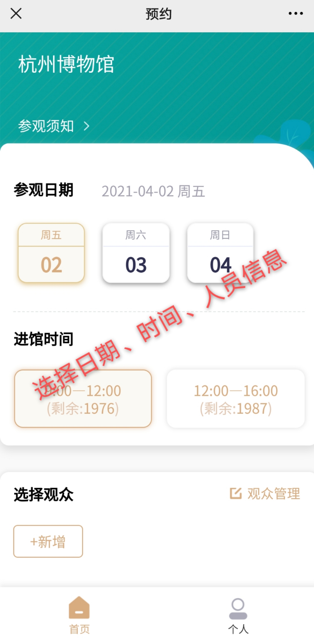 1.我館實行分時段實名預(yù)約參觀,觀眾進(jìn)入“杭州博物館”微信公眾號,可提前3天預(yù)約。預(yù)約時段分為:9:00-12:00,可預(yù)約人次2000;12:00-16:00,可預(yù)約人次2000。