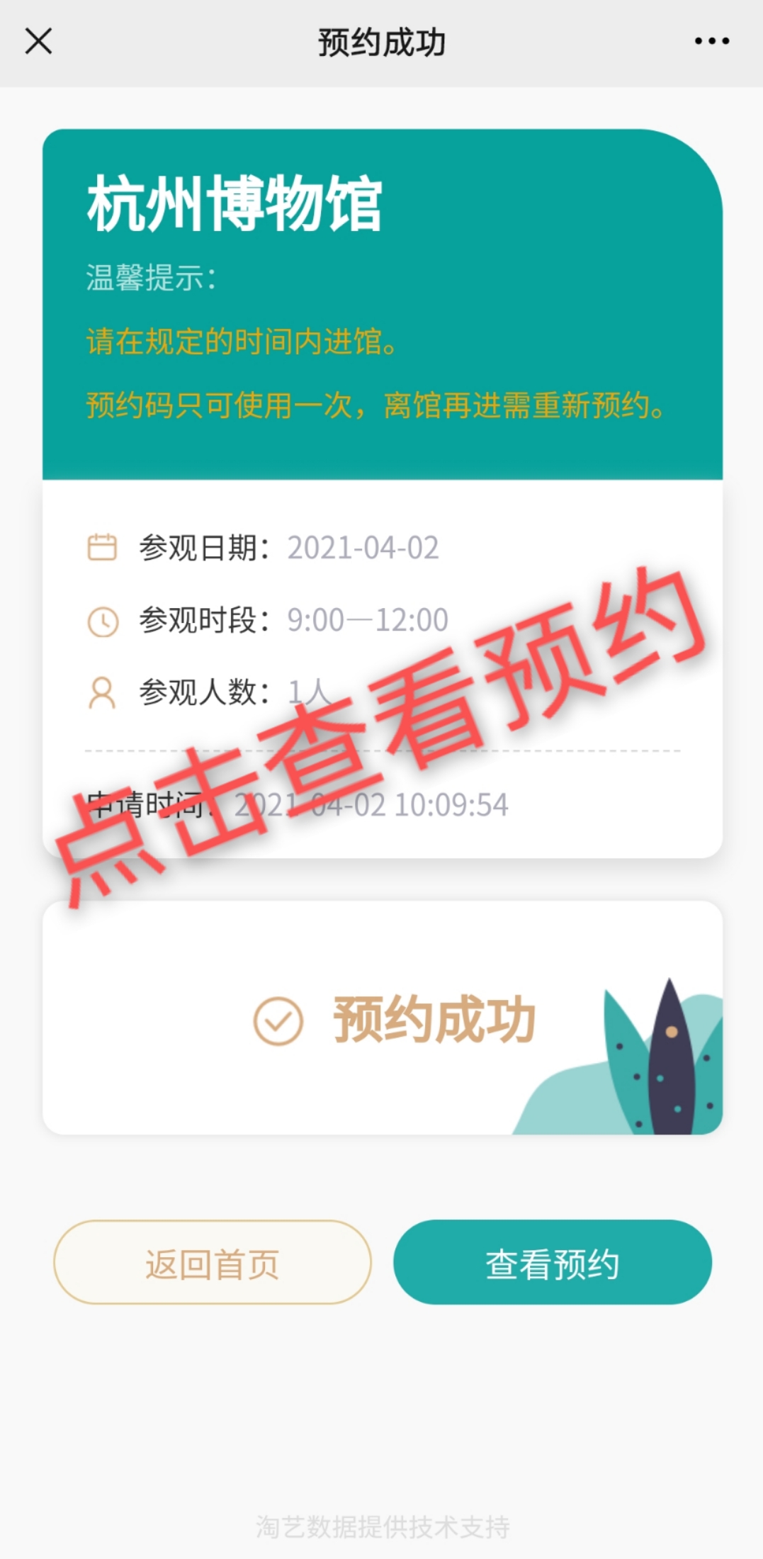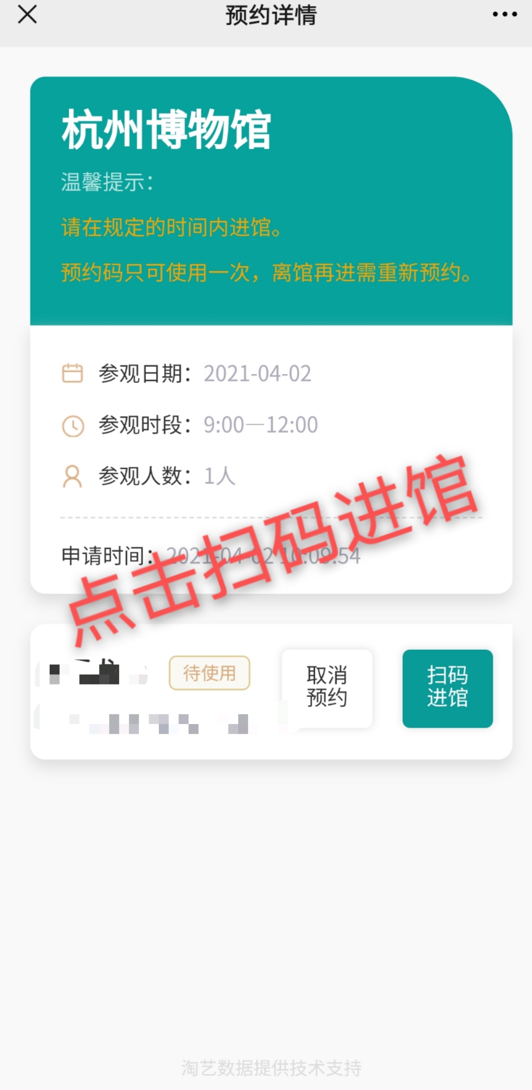 2. 每張有效身份證件每個時段限約1次,每次可預(yù)約5人。請務(wù)必截屏保存預(yù)約二維碼(也可通過微信預(yù)約界面進(jìn)入個人->我的預(yù)約->查看獲取預(yù)約二維碼 )。觀眾到館后通過刷二維碼或預(yù)約的身份證過閘檢票進(jìn)館。