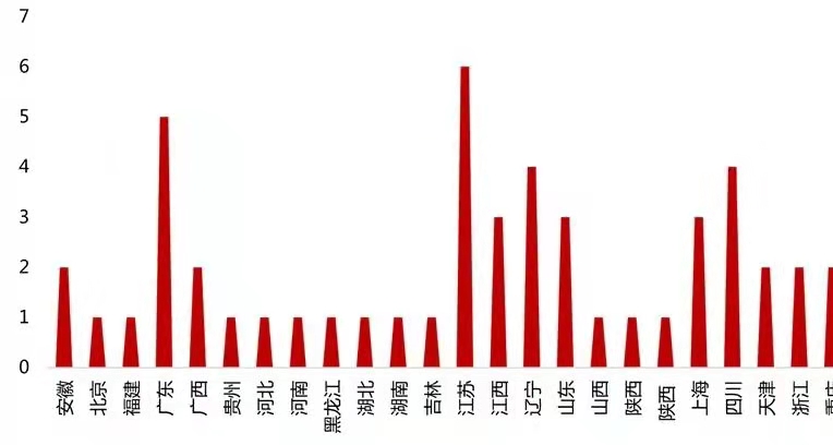 從空間分布來看,紅色文化型景區(qū)分布較為廣泛,東部、中部、西部都很豐富。由于在不同歷史發(fā)展階段,革命斗爭活動重心地區(qū)各異,同時,伴隨歷史及革命進程所涌現(xiàn)的領(lǐng)袖和名人,其誕生地也表現(xiàn)出區(qū)域性特點,所以,紅色文化型景區(qū)具有較明顯的地域集聚性特征。數(shù)據(jù)顯示,華東地區(qū)上榜數(shù)量最多,華北、華南、華中、西南、東北等地亦多有分布。