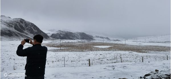 路上的雨雪下個(gè)不停。如果這樣的雨到茶卡鹽湖,別說攝影,就是參觀都不可能。人人都會(huì)落成一個(gè)落湯雞,那就沒有意義了,大家在車上商量,如果再下雨的話,就舍棄這個(gè)景點(diǎn)直接奔目的地。段會(huì)長(zhǎng)說鹽湖的景色還有很多,我們就塌下心來往前走吧。雨一直在下大家心里還有不甘。看不到茶卡鹽湖總是一個(gè)遺憾。