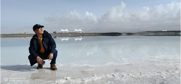 「我們」? 到達(dá)了全是鹽花的察爾汗鹽湖