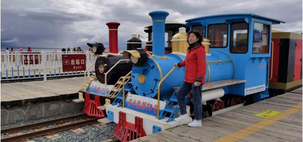 鹽湖最美景色離進(jìn)口還有4—5公里,大家都坐上了一輛小火車,鐵路是原來鹽礦采礦用的,現(xiàn)在搞起了旅游,車票每人60元,小火車大約有10節(jié)車廂吧,每個(gè)車廂有32個(gè)人,每趟就是19000元,搞旅游可能比開鹽礦更賺錢。