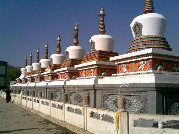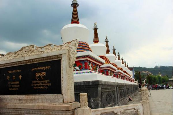 大拉浪由經(jīng)堂、華門、牌坊3座殿堂組成,為漢藏合璧式建筑,是塔爾寺總法臺的居住處,達(dá)賴、班禪曾駐蹕于此。居巴扎倉(密宗學(xué)院)系藏式平頂建筑。曼巴扎倉、丁科扎倉屬漢藏結(jié)合建筑。寶塔數(shù)十座,其中并列于寺前的8座如意寶塔,方座,瓶形塔身,尖頂,根據(jù)釋迦牟尼一生重要經(jīng)歷和傳說建成。 最后終于有了塔爾寺。