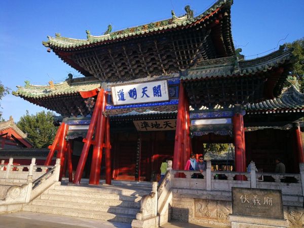 【伏羲廟】(游覽約0.5H)伏羲廟本名太昊宮,俗稱人宗廟,伏羲廟臨街而建,院落重重相套,四進(jìn)四院,宏闊幽深。廟內(nèi)古建筑包括戲樓、牌坊、大門、儀門、先天殿、太極殿、鐘樓、鼓樓、來(lái)鶴廳共10座;新建筑有朝房、碑廊、展覽廳等共6座。新舊建筑共計(jì)76間。整個(gè)建筑群坐北朝南。牌坊、大門、儀門、先天殿、太極殿沿縱軸線依次排列,層層推進(jìn),莊嚴(yán)雄偉。