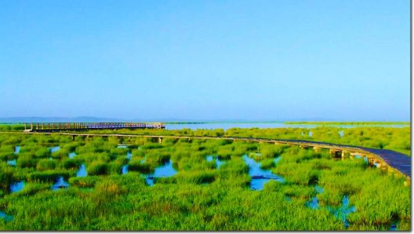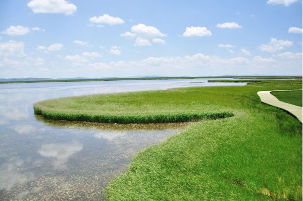 湖水透徹的藍(lán),是那種無(wú)法形容的純凈;繾綣在水天之間的云彩,有著魔力般妖艷。令人想越過(guò)棧道一直走到湖中心去,或許那里,會(huì)有更大的幸福?;ê潜姸嘁吧w禽的主要棲息地,湖面上游弋著赤麻鴨、灰雁、白骨頂、天鵝等珍稀動(dòng)物,觀景的棧橋延伸到了湖里,信步走到小亭之上,看碧波蕩漾,聽聲聲鳥鳴,獨(dú)自去體味那種浩淼與無(wú)垠。天鵝、黑頸鶴、丹頂鶴、藏鴛鴦、燕鷗、禿鷲、老鷹、旱獺、狐貍、草原鼠兔......等眾多的高寒濕地所特有的野生動(dòng)物在這自由生長(zhǎng)和生活。