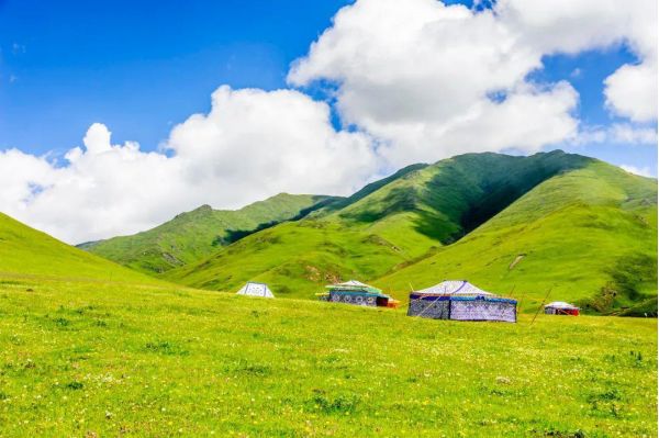 【??撇菰?/strong>】(游覽約 2H)??撇菰乔嗖馗咴臇|大門,這里水草豐美,是甘南優(yōu)良的畜牧業(yè)基地。拍攝草原牧歌美景,參觀牧民帳篷,體驗(yàn)?zāi)撩裆?,也可策馬揚(yáng)鞭,馳騁于廣闊草原上。