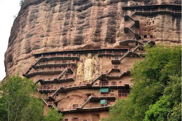 麥積山石窟(Maiji Mountain Grottoes):世界文化遺產(chǎn),國(guó)家AAAAA旅游景區(qū),國(guó)家重點(diǎn)風(fēng)景名勝區(qū),國(guó)家森林公園,國(guó)家地質(zhì)公園,全國(guó)重點(diǎn)文物保護(hù)單位,中國(guó)四大石窟之一。麥積山位于甘肅省天水市麥積區(qū),是小隴山中的一座孤峰,高142米,因山形酷似麥垛而得名。