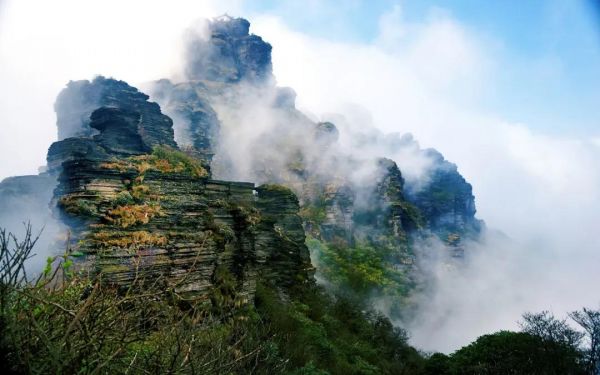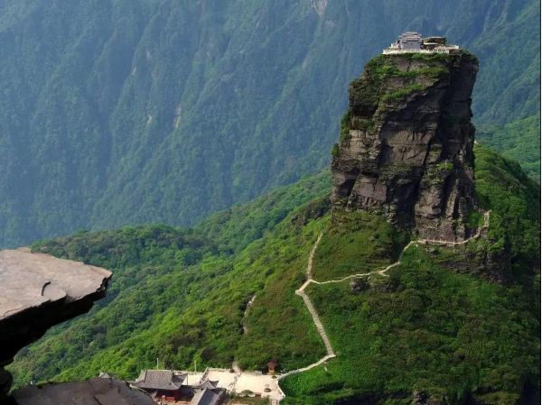 上午:乘車前往梵凈山。游覽武陵山脈主峰、中國五大佛教名山的 【梵凈山】 (不含梵凈山電瓶車 20 元/人,往 返索道 140 元/人,必須消費敬請自理) (游覽不少于 4 小時)、1986 年被列為國家級自然保護區(qū)、是聯(lián)合國“人與 生物圈”保護網(wǎng)成員,乘坐纜車接近山頂欣賞靈山奇石: 【翻天印,鳳求凰,萬卷書,思過崖,九皇洞等】,一路尋 找黔金絲猴和鴿子花的身影,帶著虔誠的心到 【承恩寺、燃燈殿,釋迦彌勒殿】祈福。面向佛山之核心— 【紅云金頂】:參悟現(xiàn)在,憧憬未來(登金頂山路陡峭,有一定的危險性,請游客根據(jù)自身身體情況選擇),觀梵凈山的標志景點— 【蘑菇石】。登上山頂,一覽眾山小,在云霧虛無縹緲之間,放空自我。