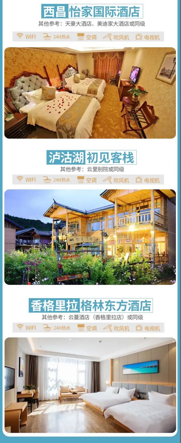 3、住宿 :含全程7晚酒店(含2晚瀘沽湖湖畔風情客棧)。