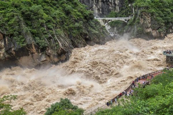 金沙江經(jīng)長江第一灣之后忽然掉頭北上,從哈巴雪山和玉龍雪山之間的夾縫中硬擠過去,原本平靜祥和的江水頓時變得怒不可遏,形成了世界上最壯觀的大峽谷,而峽谷中最窄的地方就是我們今早的目的地——聞名天下的【虎跳峽】 。我們的團期覆蓋虎跳峽最壯美的汛期,震撼的視覺沖擊能瞬時將你驚得無言,狂怒的江水拍打著崢嶸亂石,激起沖天水柱和浪花, 浪與岸、浪與岸之間碰撞發(fā)出雷霆般的轟鳴,空氣中也滿帶著泥沙味道。在大自然的鬼斧神工面前,人是如此渺小和微不足道。