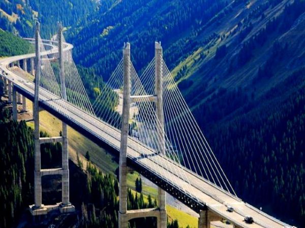 果子溝大橋作為新疆第一座斜拉橋、第一高橋,是新疆最大最重要的橋梁,同時也是全國首座公路鋼桁梁斜拉橋,它集新技術(shù)、新結(jié)構(gòu)、新工藝、新設(shè)備"四新"于一身,是新疆公路建設(shè)史上一次重大突破。在新疆首次使用大體積混凝土溫度控制技術(shù)、塔梁異步施工工藝、液壓爬膜、自行式移動模架等國內(nèi)領(lǐng)先技術(shù),為山區(qū)高速公路施工積累了寶貴的經(jīng)驗。