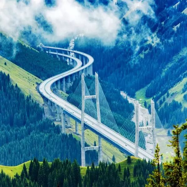 果子溝大橋在設(shè)計施工中秉承"以最小限度破壞、最大限度的恢復(fù)"的環(huán)保理念,在克服地質(zhì)災(zāi)害頻發(fā)影響通行的同時,邊施工邊進行環(huán)?;謴?fù)工作。建成的大橋橋身與果子溝的美景渾然一體,將為果子溝國家級風景區(qū)再添一道美麗風景線。