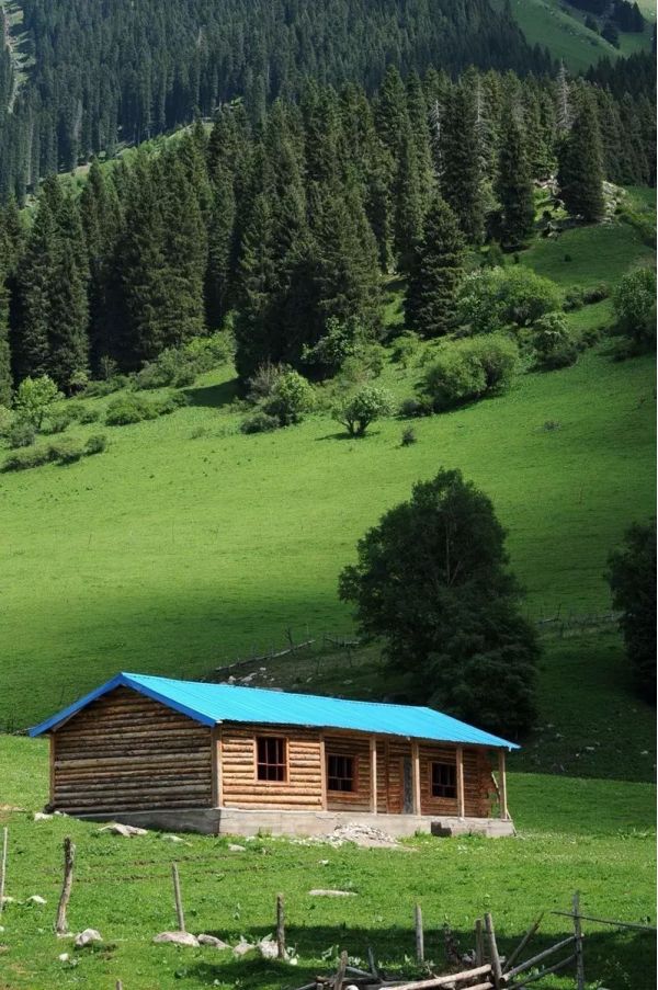瓊庫什臺村幾乎所有的民房都是木建筑,有的房子是由整根原木搭的,有的房子是將原木從中間一分為二,通過掏、榫、拱等各種工藝搭起來的。在棚圈部分甚至連樹皮都沒有剝離。建筑的平面、立面和細部處理、建筑技術(shù)和施工技藝等保持著建筑文化的印跡,歷史信息豐富,具有較強的原真性,是至今伊犁河谷保存完好的一個木構(gòu)建筑群。這里夏季多雨、潮濕,瓊庫什臺村的先民根據(jù)當?shù)氐淖匀画h(huán)境和生存需要,就地取材,用木材建房,形成了這個獨具特色的村落。因松、杉樹木質(zhì)堅硬,經(jīng)久耐用,從而使當?shù)氐哪緲?gòu)建筑沒有變形,使用壽命長。加之地處大山深處,交通不便,各家各戶對自己的房屋用心保護,故村落中大量的民居保存完好,部分民居已有100多年的歷史,具有豐富和完整的歷史文化內(nèi)涵。從瓊庫什臺村以木構(gòu)建筑作為哈薩克族牧民的居住建筑看,這無疑是牧民們從流動性居住方式向永久性居住方式的演變。還保留著很多上世紀五、六十年代具有哈薩克族游牧民族特色的木屋。