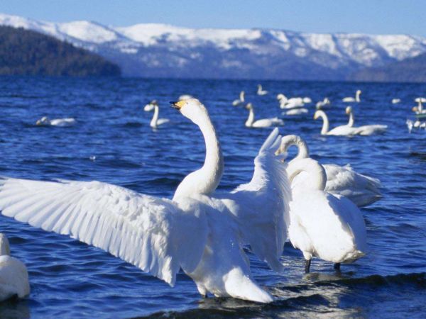 巴音布魯克天鵝湖,是亞洲最大、我國唯一的天鵝自然保護區(qū),棲息著我國最大的野生天鵝種群。位于新疆和靜縣巴音布魯克草原境內(nèi),平均海拔2400米,總面積約1100平方公里,由無數(shù)條曲曲彎彎的大小湖組成。巴音布魯克草原是僅次于鄂爾多斯的我國第二大草原,面積2.4萬平方公里,海拔2,300-2,800米。該地區(qū)的居民主要是蒙古族,約占該地區(qū)人口的78%。當?shù)孛晒抛迥撩駥μ禊Z倍加保護,與天鵝恬然相處。每逢春季,冰雪解凍,春暖花開之時旅居在印度、緬甸、巴基斯坦,甚至遠到黑海、紅海和地中海沿岸諸國的大天鵝、小天鵝、疣鼻天鵝為主的上萬多只珍禽,不遠萬里,成群結(jié)隊地飛到巴音布魯克棲息繁衍。當冬季來臨,他們又攜帶家眷,飛越喜馬拉雅山南離去。