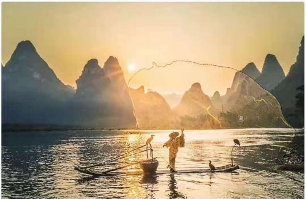 1.拱橋、老翁、魚鷹:美麗的桂林山水配合環(huán)境搭配經(jīng)典的畫面場景,記錄這動人的山水之大美;