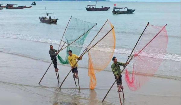 4.廣西京族:高蹺捕魚、耙螺、京族服飾;品嘗美味海鮮大餐,日出金灘上精彩的場景搭拍;