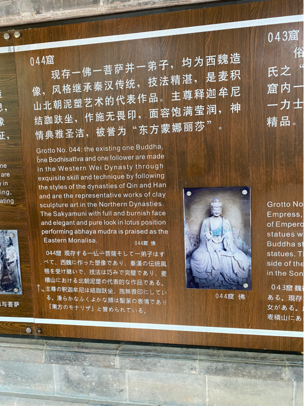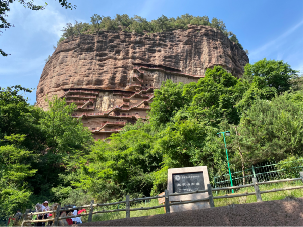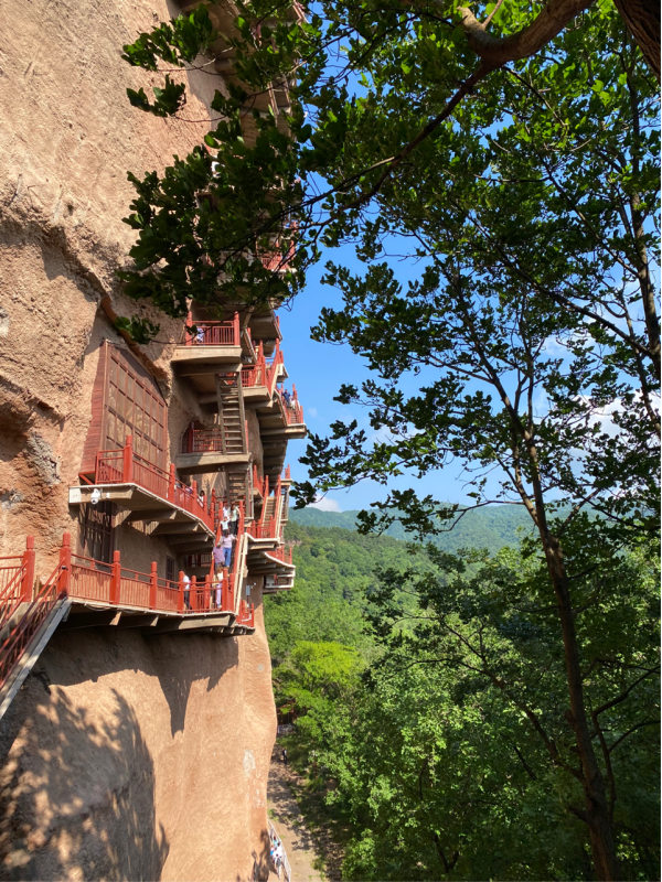 麥積山因山形似麥垛而得名。麥積山石窟始建于384-417年。存194個窟龕、7000多尊造像、1000平方米壁畫,被譽為東方雕塑藝術(shù)陳列館。是我個人非常喜歡的景點,集人文、風光于一身,兼具知識性與趣味性。