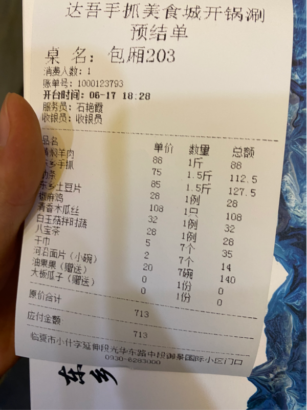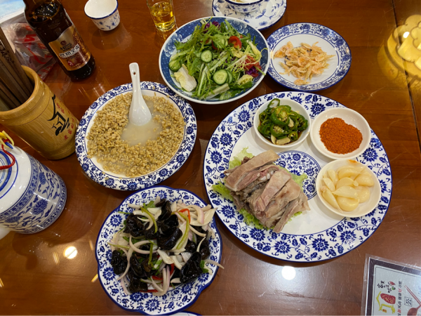 游覽結(jié)束,回到天水市區(qū)入住。想吃當?shù)靥厣?,找到了“老家八大碗”解決晚飯,非常滿意,手抓羊肉、甜胚子、大拌菜,有滋有味。此時還不知道接下來面臨什么樣的美食荒漠。當?shù)氐臋烟乙脖容^有名便宜,路上買了一點。