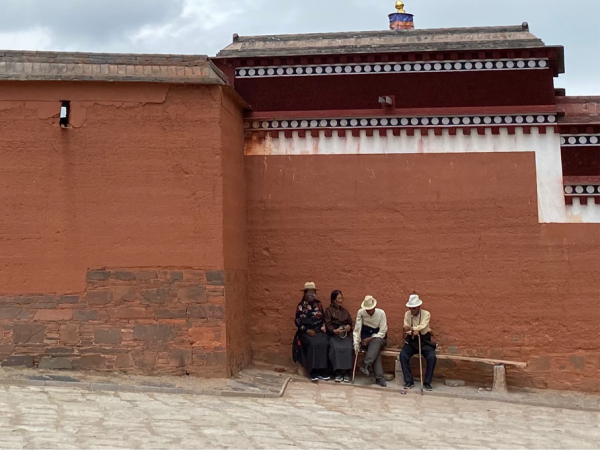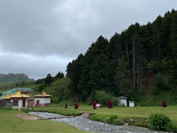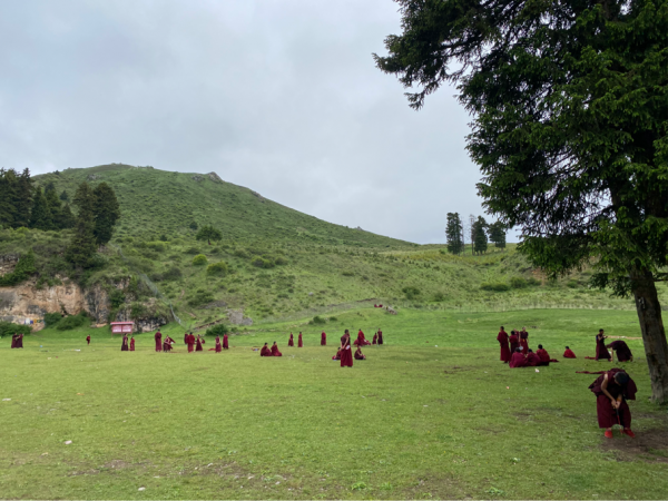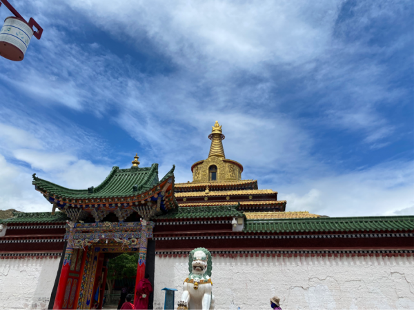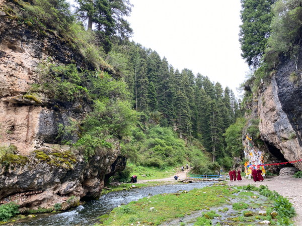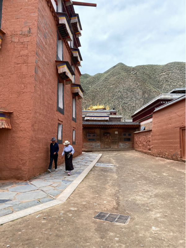 因為后邊有更大的拉卜楞寺,所以不具體介紹了。相較而言,郎木寺可以更好地觀察僧人的生活,小僧人們打羽毛球、放風箏、修房子干啥的。拉卜楞寺建筑更宏大,管理更規(guī)范,這方面看不到。這邊還有個峽谷,但是過于濕滑,就沒走了。轉(zhuǎn)經(jīng)筒出口的門有點低,頭頂撞了一個包,寧波爺爺說是撞大運了。