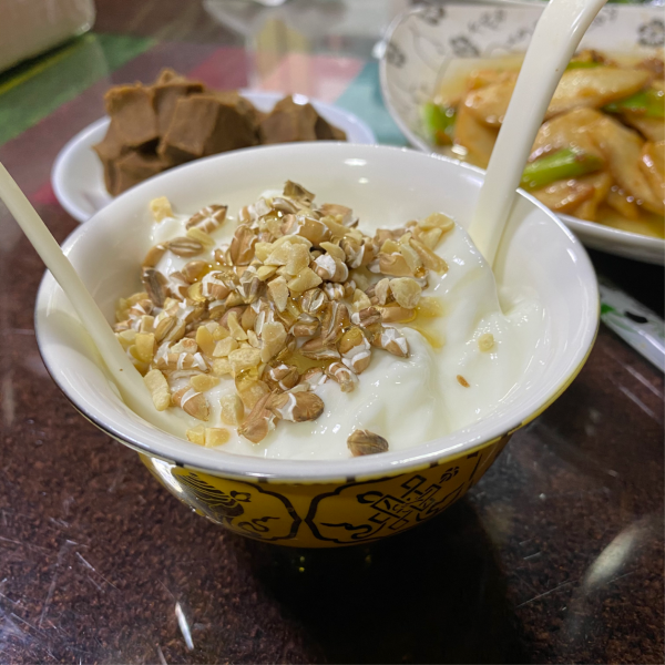 晚上想吃糌粑,去“口口香小吃”吃了想吃的。小店里有本地僧人和各地旅客來吃。老板性格活潑,旅客熱情開放,氣氛不錯,味道也還行。
