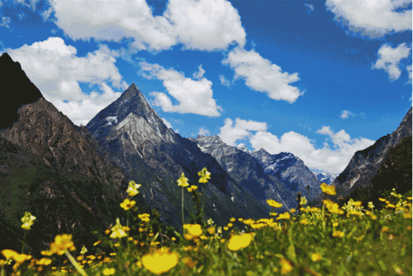 夏天,川西是活潑充滿生機(jī)的,草慢慢綠了,野花慢慢開了,蔚藍(lán)的天空……
