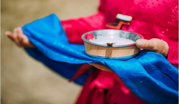 13、呼倫貝爾地區(qū)是屬于邊疆少數(shù)民族地區(qū),民風(fēng)淳樸,餐飲習(xí)慣極具特色。獻(xiàn)哈達(dá)是蒙古族牧民迎接客人和日常交往中所使用的禮節(jié),在迎賓儀式上蒙古人會(huì)雙手捧哈達(dá)、銀碗為客人敬酒,即使不會(huì)飲酒,也要接過(guò)銀碗粘粘唇,再將酒杯還回,以示對(duì)主人的尊重,少數(shù)民族有愛(ài)畜、敬茶、敬酒、獻(xiàn)哈達(dá)等禮俗,請(qǐng)留意導(dǎo)游的解說(shuō)。