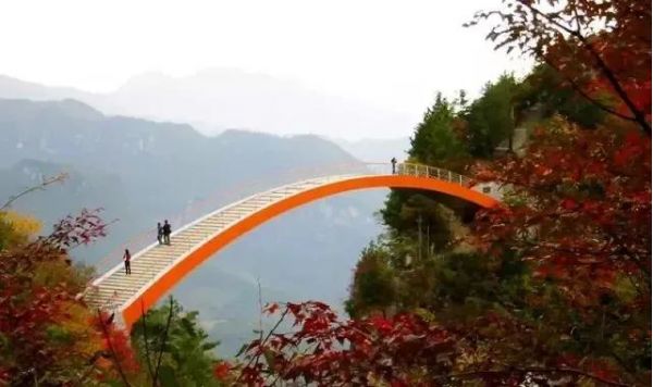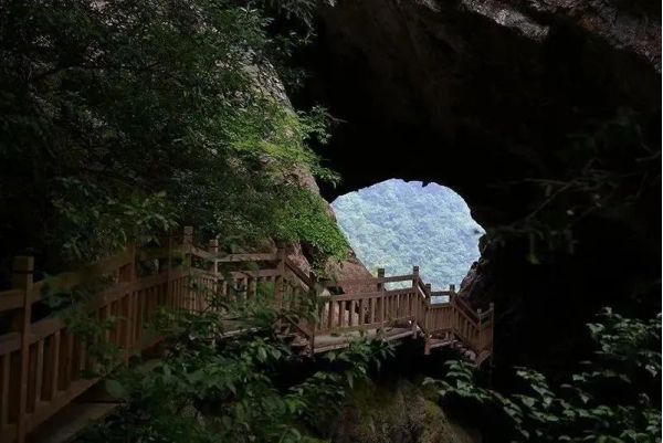 發(fā)源于老君山的黃巖河流經(jīng)此地,經(jīng)過億萬年的流動、溶蝕,形成一巖溶性天生穿洞,河水穿洞下瀉,呈現(xiàn)出‘天橋飛渡’。在這里有風情萬種的飛瀑,鬼斧神工的天然石橋,美麗的蘭花山,險峻扼要的石壁棧道,組成了一幅絢麗多彩的山水畫卷。