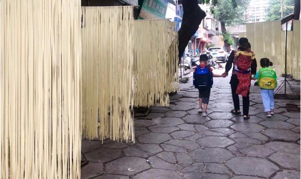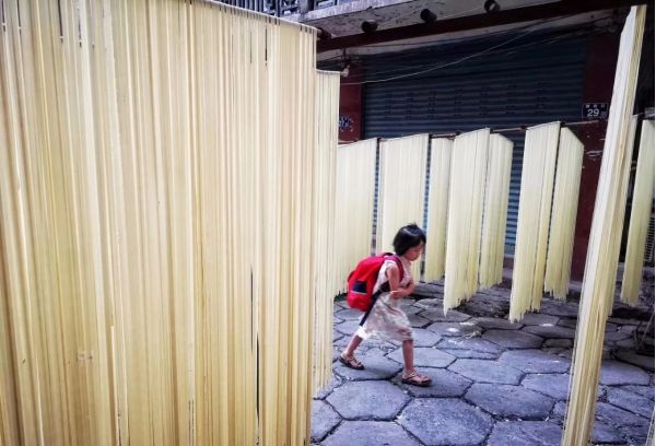 上午我們在老街上拍攝曬面的場景,家家戶戶都在制作手工的面條,一排排的晾曬在逐級而上的臺階晾曬;學(xué)生、百姓穿梭其間,滿滿的的百姓生活氣息;下午前往福寶古鎮(zhèn),這里依山傍水而建的民居是佛寶古鎮(zhèn)的一道風(fēng)景線,隨水而陡纊故有許多吊腳樓。傍晚的老街,常伴一盞小燈旁。
