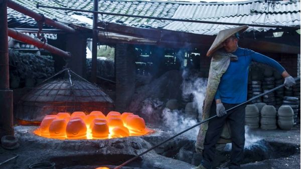 川南的市集滲透著區(qū)域百姓柴米油鹽的生活百態(tài),我們也和他們一起穿梭,感知人間百味;然后去往千年的醬園釀造作坊,時至今日,赤水河畔35度的山坡上,整整齊齊地排列著4000多口曬露缸。百余年來持續(xù)不斷的釀造傳承,日悉心照料,攪拌翻曬,形成了最獨特的風(fēng)味以及難得一見的場景。拍攝結(jié)束后前往滎經(jīng),下午在滎經(jīng)拍攝老街道、已經(jīng)手工制作陶瓷的場景。