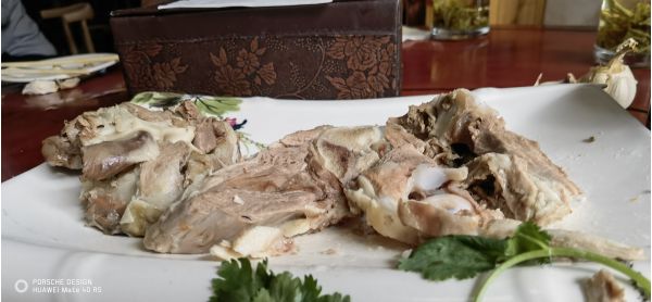 午餐吃的羊肉和面皮,羊肉鮮嫩而不膻,配合辣椒蘸料和蒜瓣,真是一道人間美味;面皮就更有講究了,據(jù)說武威面皮子在本類食品中的制作方法、口感全國(guó)獨(dú)一家,是因制作時(shí)要加蓬灰。蓬灰這種東西,其主要成分是碳酸鉀。據(jù)現(xiàn)有資料,面食中加蓬灰的只有蘭州牛肉面和涼州面皮子。加蓬灰,面得筋而精,使面筋而精的東西也多,獨(dú)有蓬灰,在蘭州牛肉面和涼州面皮子中無其它物可替代。雖說現(xiàn)在蓬灰有了工業(yè)生產(chǎn)品,用起來也方便,但終究不如用土法燒制的蓬灰做出來的地道。洗、蒸面皮子辛苦。洗時(shí)將面攪成糊狀,加適量蓬灰,一遍一遍澆洗,無法溜下籮兒的便是面筋。工序不復(fù)雜,但繁復(fù),一遍又一遍。大清早起來要蒸,一扇一扇,十幾架籠架起來,火候如一,過火或火不透,都會(huì)影響面皮子的成分和質(zhì)量。面皮子一出籠,倒扣在案板和其它有案面的東西上,抹上熟清油,不起眼的面皮子便亮旺旺地呈現(xiàn)在人們面前。好的面皮子吃起來確實(shí)筋道。不放任何調(diào)料,抓一塊放到嘴里咬嚼,也會(huì)食欲大增,這種吃法叫吃甜面皮。那種甜,與糖味無關(guān)。蓬灰加的多少、蓬灰材質(zhì)的好壞、洗面皮子的人的手感、面的質(zhì)量,都是好的面皮子受人稱道的條件。蓬灰加得多了,面皮子的味會(huì)苦,吃一口面皮,羊肉味道仿佛蘊(yùn)含在面皮中,在口腔中釋放,面皮軟糯,味道醇厚,湯汁濃郁,來武威不吃一碗面皮,實(shí)屬可惜。