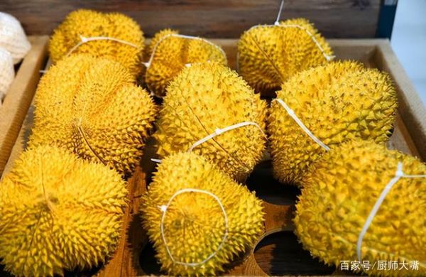 不要選細(xì)長尖刺的,要選粗短的,再用手把兩根尖刺捏在一起,如果能輕易靠攏,說明榴蓮已經(jīng)成熟。榴蓮最好選黃色或者姜黃色的,榴蓮底部是平的,果柄是新鮮的,有很濃郁的榴蓮香味,這樣的榴蓮一般都是新鮮飽滿的。