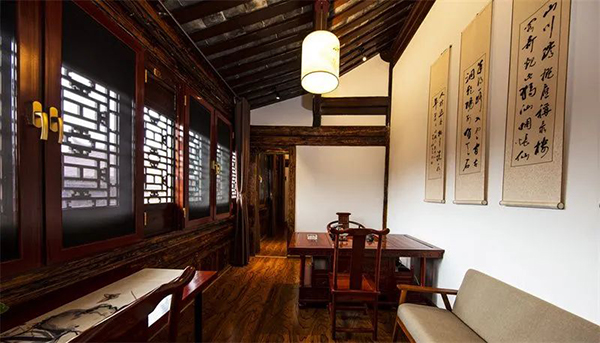 尤其數面照壁上的山水畫卷,讓客棧的空間更顯寬闊和立體。